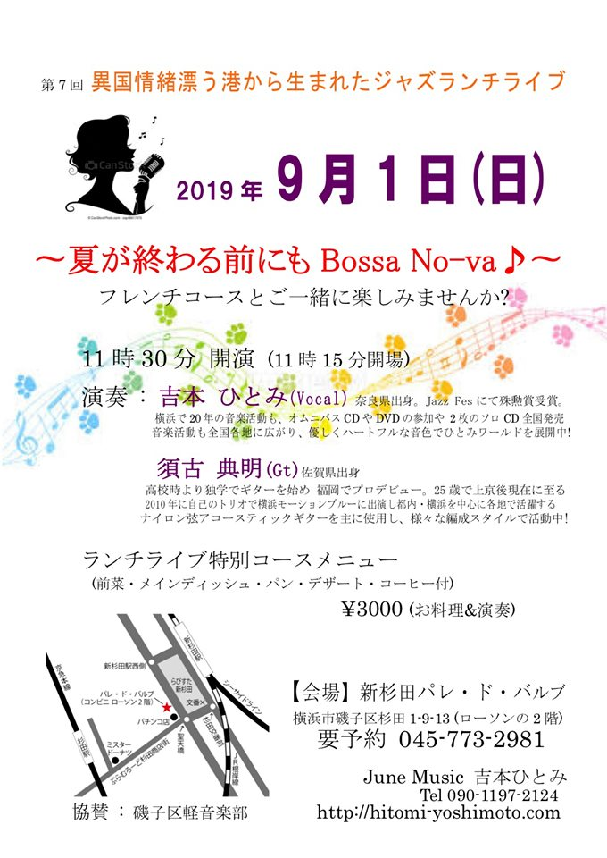 磯子区軽音楽部ジャズの会・代表を務めるジャズ・シンガー吉本ひとみさん。全国の熱心なファンが、年に一度ツアーで彼女が訪れるのを待っています。そして、現在の地元・磯子区では、フランス料理店「パレ・ド・バルブ」で3か月に一度、日曜のお昼にランチつきのライブを開催しています。